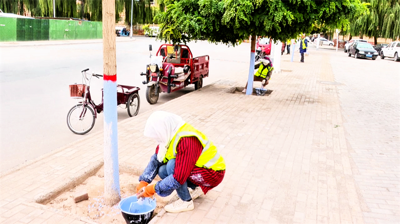 在坐落产品西街的树木涂白作业现场,施行工程人员依照操作流程做到上口平齐,下不露“脚”,对树皮缝隙、洞孔等处进行重复涂刷,并依照树干的刷白高度一致控制在离地上1.2米左右,小乔木刷白高度控制在0.8米左右的操作规范,做到高度一致、涂白均匀,到达全体漂亮的效果。