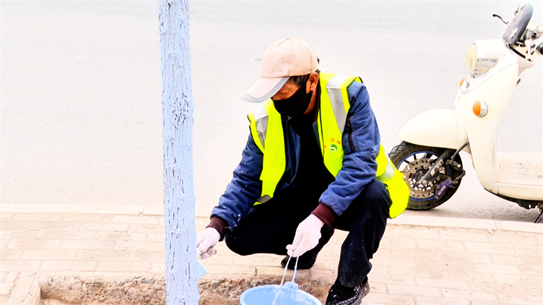 连日来,高台县园林绿化局安排人员对城区主干道行道树进行刷白处理,保证树木安全过冬。
